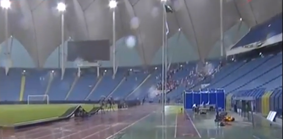 شاهد ..سقوط بوابة اللاعبين وإعلانات ملعب استاد الملك فهد جراء عاصفة الرياض