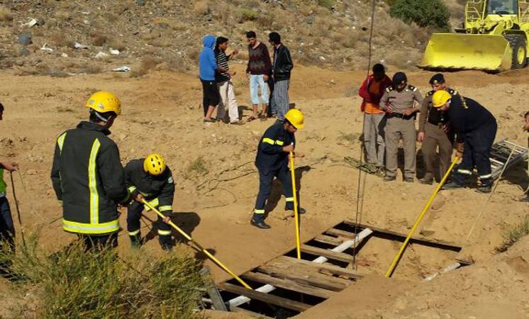 باشرت فرق الدفاع المدني مساء اليوم حادثة سقوط ناقة في حفرة للصرف الصحي.