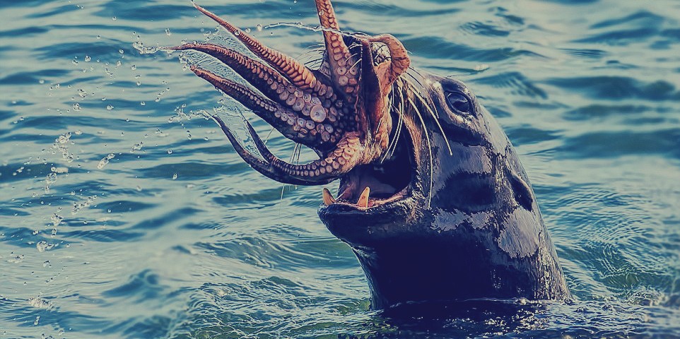 وذكر موقع «ديلي ميل» البريطاني، أن حيوان الفقمة الجائع قرر أن يكون الإخطبوط وجبة إفطاره، لكن الإخطبوط لم يستسلم وأخذ يلف أذرعه حول وجه الفقمة، ولسوء حظ الإخطبوط المحارب، فاز الفقمة بالمعركة وابتلع الإخطبوط مرة واحدة.