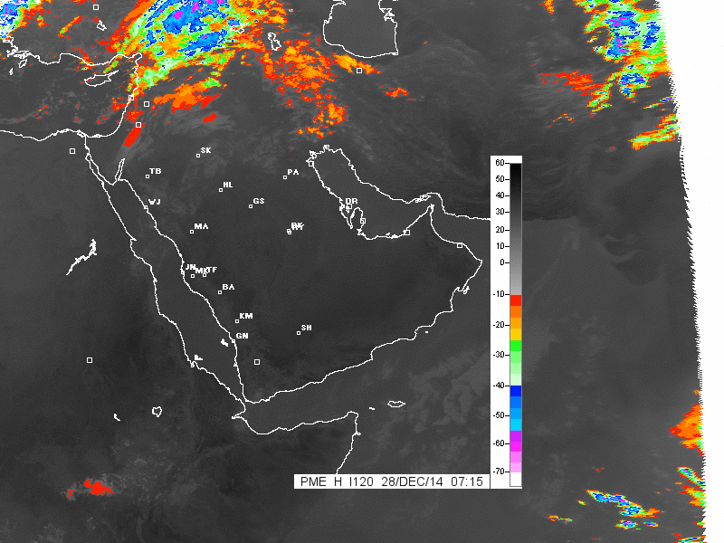 توقعت الرئاسة العامة للأرصاد وحماية البيئة سماءً غائمة جزئيا على أجزاء من شمال ووسط وغرب المملكة فيما تتأثر الرؤية الأفقية بالعوالق الترابية على مناطق الجوف وحائل والحدود الشمالية والقصيم .