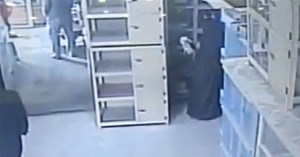 ونفذت المرأة سرقتها بإحترافية عندما فتحت القفص المخصص للقطة وأمسكت به قبل أن تفتح عباءتها وتخفيها داخلها وتخرج مسرعة برفقة أخرى.