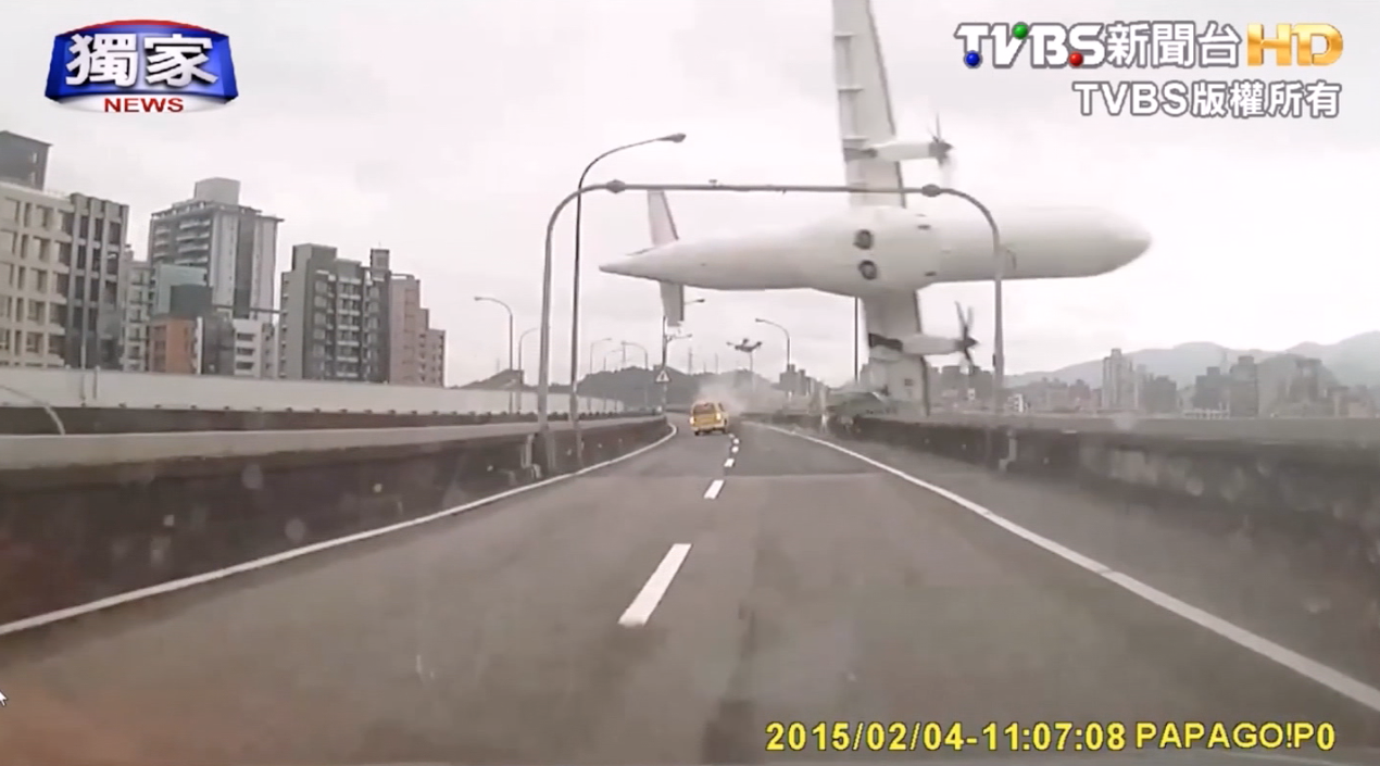 وبينما كانت الطائرة تتهاوى باتجاه الأرض، اصطدم أحد أجنحتها بسيارة كانت تمر فوق الجسر، لتسقط الطائرة في نهر “كيلونغ”، فيما تمكن قائد السيارة من السيطرة عليها.