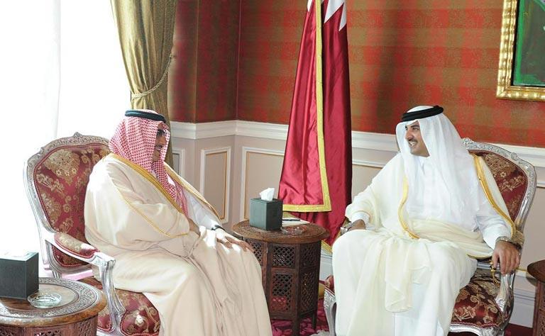 استقبل الشيخ تميم بن حمد أمير دولة قطر الثلاثاء الأمير محمد بن نايف ولي ولي العهد النائب الثاني لرئيس مجلس الوزراء وزير الداخلية بفندق الريتز كارلتون بالدوحة، في زيارة تعد الأولى خارجياً لولي ولي العهد السعودي.
