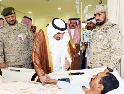 أمير نجران يزور أفراد القوات المسلحة المصابين خلال المواجهات مع الحوثيين