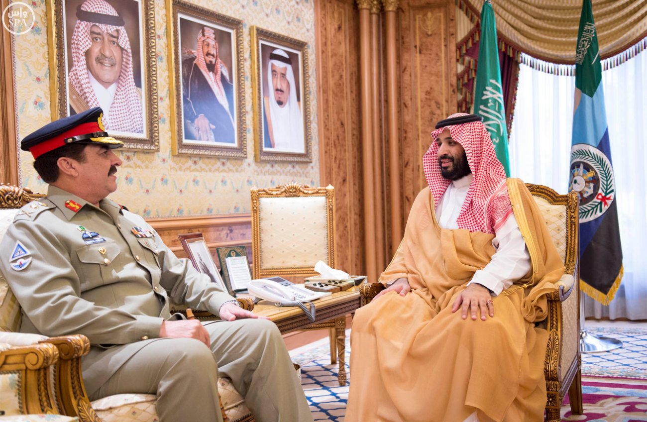 عقد صاحب السمو الملكي الأمير محمد بن سلمان بن عبدالعزيز وزير الدفاع رئيس الديوان الملكي المستشار الخاص لخادم الحرمين الشريفين، في مكتبه بالمعذر اليوم اجتماعا ثنائياً مع قائد الجيش الباكستاني الفريق أول ركن رحيل شريف.