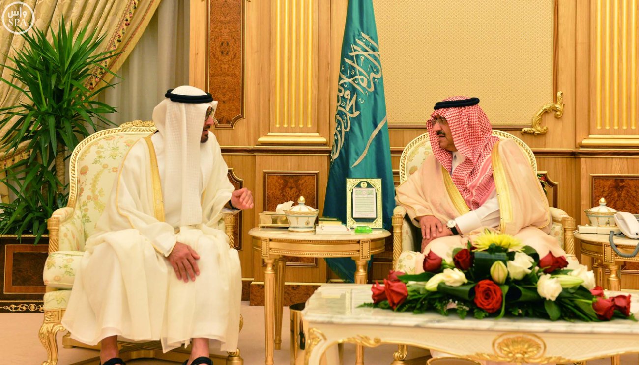 استقبل صاحب السمو الملكي الأمير محمد بن نايف بن عبدالعزيز ولي العهد نائب رئيس مجلس الوزراء وزير الداخلية ، وصاحب السمو الملكي الأمير محمد بن سلمان بن عبدالعزيز ولي ولي العهد النائب الثاني لرئيس مجلس الوزراء وزير الدفاع بقصر اليمامة اليوم صاحب السمو الشيخ محمد بن زايد آل نهيان ولي عهد أبو ظبي نائب القائد الأعلى للقوات المسلحة بدولة الإمارات العربية المتحدة والوفد المرافق له.