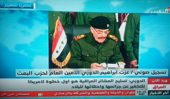 أكد عزة إبراهيم الدوري، أمين عام حزب البعث العراقي ونائب صدام حسين ، عدم ارتباط حزب البعث بتنظيم “داعش” الإرهابي ، مشدداً على أهمية تسليح العشائر السنية، عاداً أن أمريكا تحاول تصحيح أخطائها في العراق إن كانت صادقة في تسليح العشائر السنية.