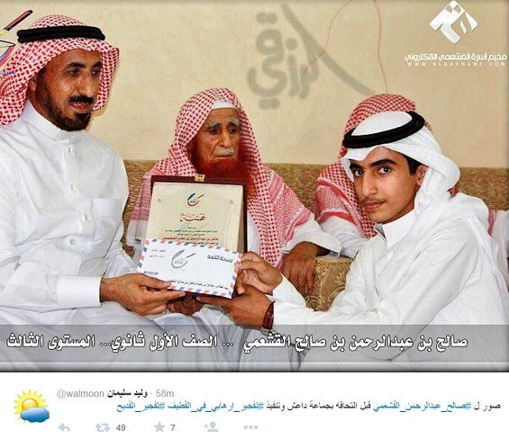 أسرة انتحاري القديح تتبرأ منه و تستعيد أيام تفوقه بصورة من زمن البراءة