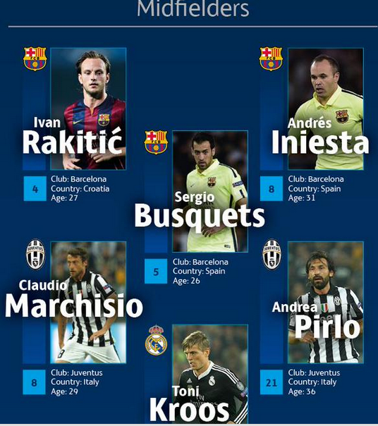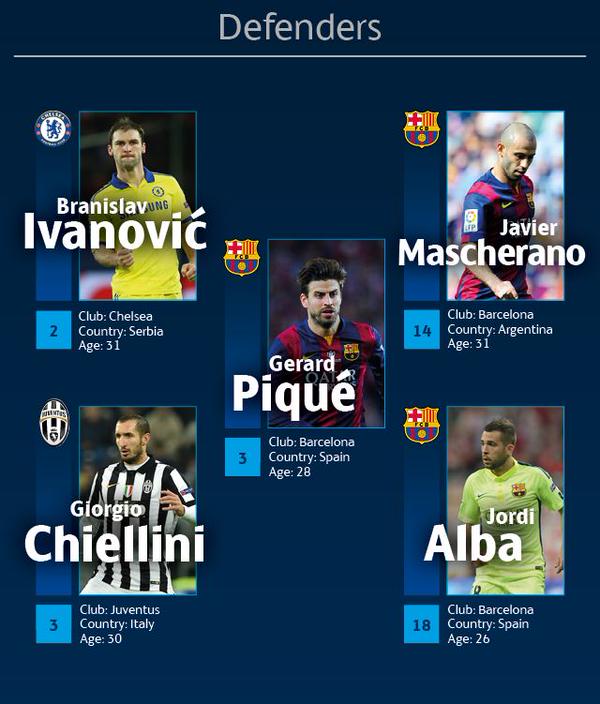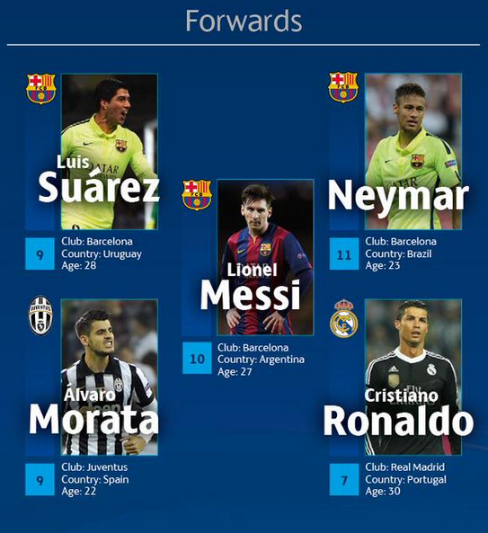 التشكيلة المثالية لدوري الأبطال : 10 من برشلونة و 8 من باقي الأندية