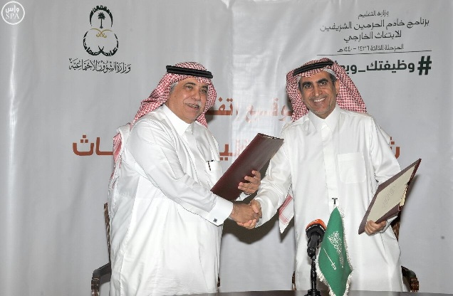 وقع وزير التعليم الدكتور عزام بن محمد الدخيّل ومعالي وزير الشؤون الاجتماعية الدكتور ماجد بن عبد الله القصبي, اتفاقية تعاون لابتعاث 1000 طالب وطالبة ضمن برنامج خادم الحرمين الشريفين للابتعاث الخارجي في مرحلته الثالثة # وظيفتك-وبعثتك، لشغل وظائف لدى وزارة الشؤون الاجتماعية بعد إكمالهم فترة الابتعاث في تخصصات التنمية الاجتماعية ورعاية المعوقين.