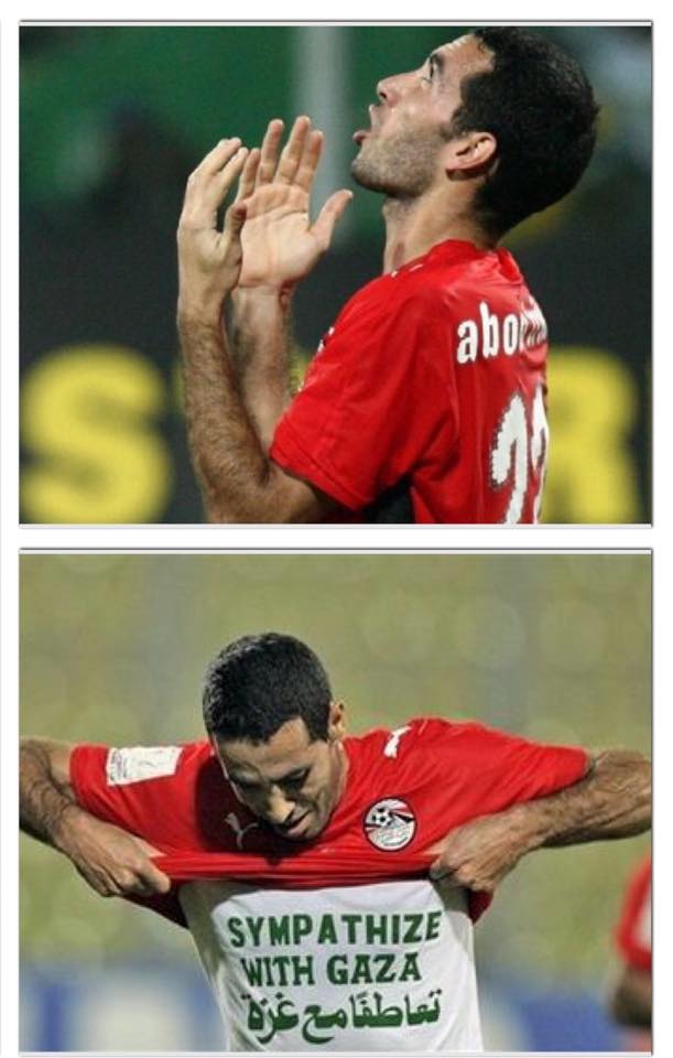 و حضرت تعليقات الفسطينين بشكل مكثف ، فيما يمثل امتدادا لعلاقة ود جمعتهم بأبوتريكة منذ تحدى قوانين كرة القدم وأبدى تعاطفه مع سكان قطاع غزة خلال مشاركته مع منتخب مصر في كأس الأمم الإفريقة عام 2010 .