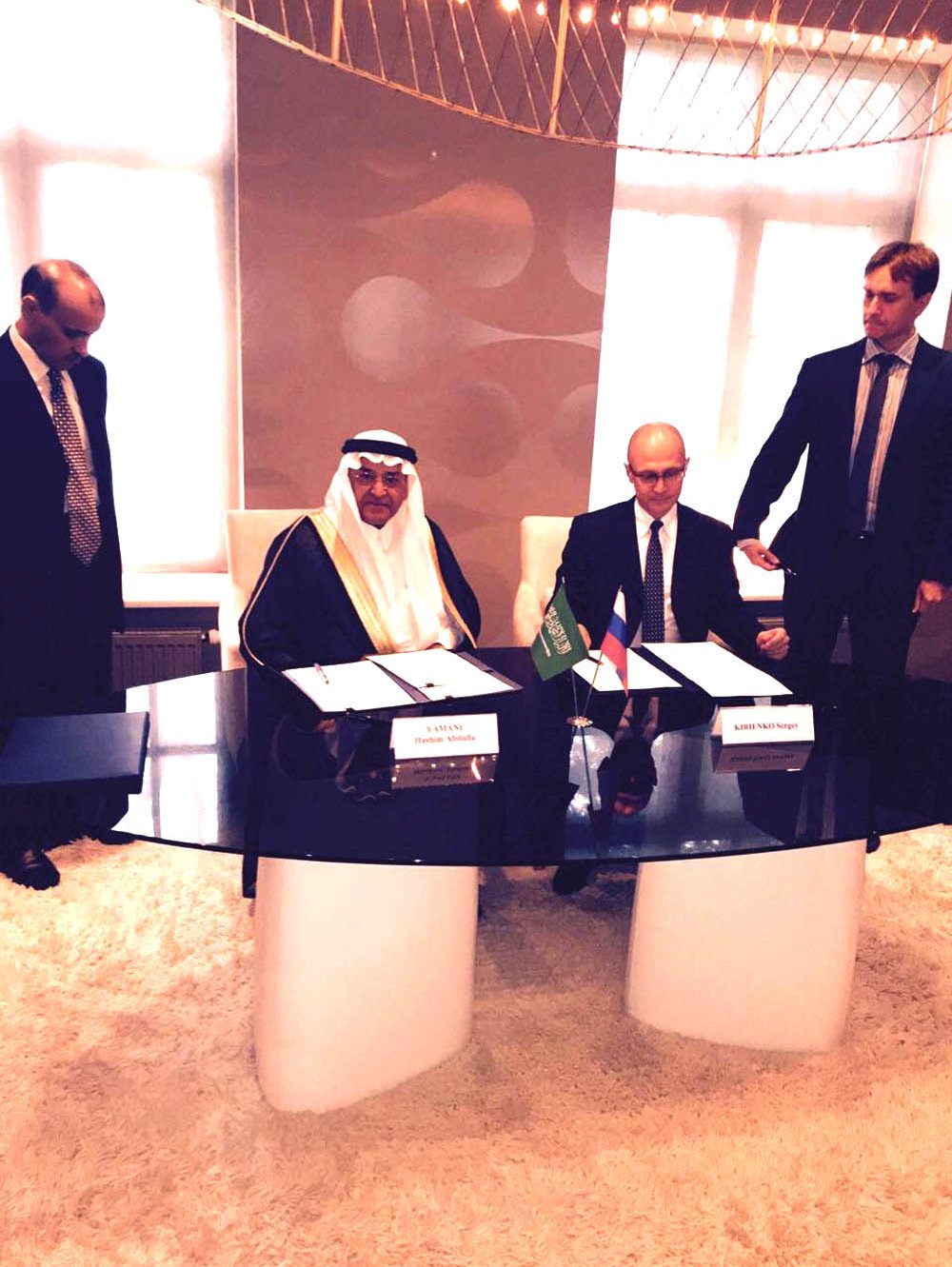وقع رئيس مدينة الملك عبدالله للطاقة الذرية والمتجددة الدكتور هاشم بن عبدالله يماني مع رئيس المؤسسة الحكومية للطاقة الذرية بروسيا سيرجي كير بيناكو اتفاقية بين حكومة المملكة العربية السعودية وحكومة روسيا الاتحادية للتعاون في مجال الاستخدامات السلمية للطاقة الذرية , وذلك في إطار زيارة صاحب السمو الملكي الأمير محمد بن سلمان بن عبدالعزيز ولي ولي العهد النائب الثاني لرئيس مجلس الوزراء وزير الدفاع إلى روسيا .