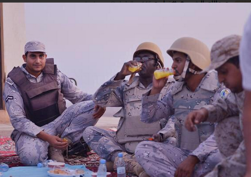 تداول نشطاء بمواقع التواصل الاجتماعي اليوم الثلاثاء مجموعة صور لجنود سعوديين ساعة الإفطار .