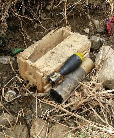 العثور على مقذوفات هاون مطمورة تحت التراب في «وادي ليه» بالحرث (صور)