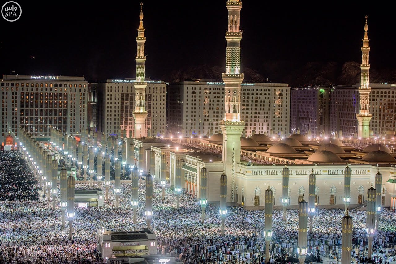 غصت أروقة المسجد النبوي الشريف وساحاته الليلة بأكثر من مليون مصل من المواطنين والمقيمين والزوار من داخل وخارج المدينة المنورة الذين حرصوا على أن يشهدوا ليلة ختم القرآن الكريم خلال شهر رمضان المبارك الجاري، وسط أجواء روحانية وإيمانية مفعمة بالأمن والأمان.
