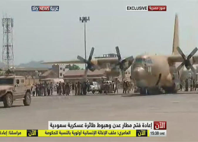بالفيديو والصور ..إعادة تشغيل مطار عدن وهبوط طائرة عسكرية سعودية