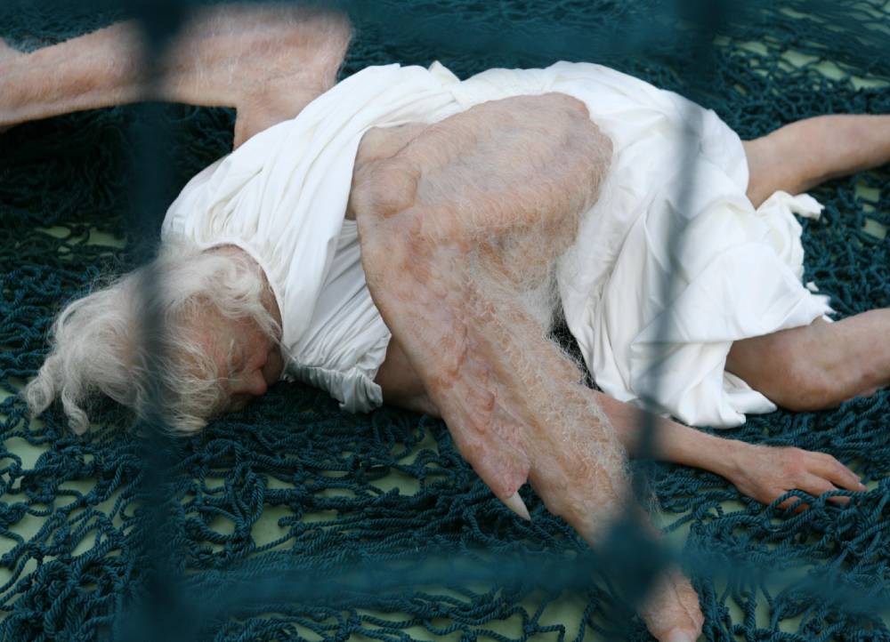وتبين لاحقًا حقيقة هذا الكائن الغريب، فهو مجسم من ألياف زجاجية وفولاذ تم تصنيعه في عام 2008، بواسطة فنانين مشهورين في الصين، وهما “صن يوان وبنج يو”، حيث نحتا جسد سيدة عجوز بجناحين، ترتدي ملابس بيضاء وتم عرض هذا العمل في كثير من المعارض في لندن والنمسا والصين والسويد كأحد أعمال المحاكاة للواقع. وذلك حسبما أفادت صحيفة “ديلي ميل” البريطانية.