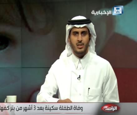 انتقد الإعلامي عبدالله الغنمي مقدم برنامج “الراصد” على قناة “الإخبارية” التقصير وعدم الاهتمام بمتابعة حالة الطفلة “سكينة” إلى أن تُوفيت أمس (الأحد) عقب ثلاثة أشهر من بتر جزء من يدها جراء خطأ طبي بمستشفى القطيف المركزي.