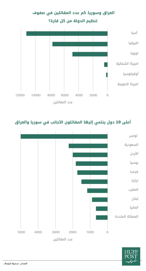 تابع هذا الإنفوغرافيك لتتعرف على أهم 10 دول مصدرة للجهاديين للعراق وسوريا..