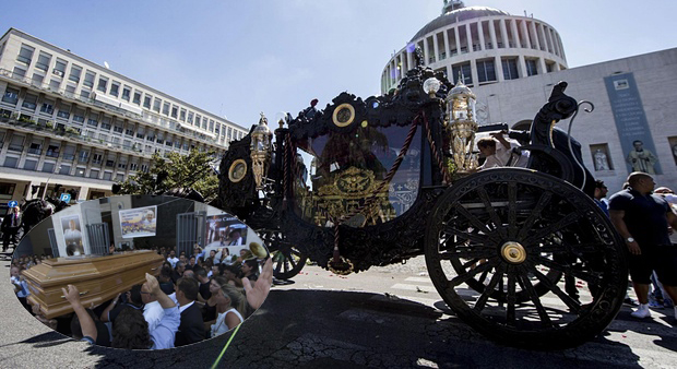 حظى رأس عائلة اجرامية كبيرة في روما بجنازة ضخمة أمس الخميس ألقت خلالها طائرات هليكوبتر الزهور من الجو على المشيعين وعزفت فرقة موسيقية اللحن المميز لفيلم (الأب الروحي) او (جاد فاذر).