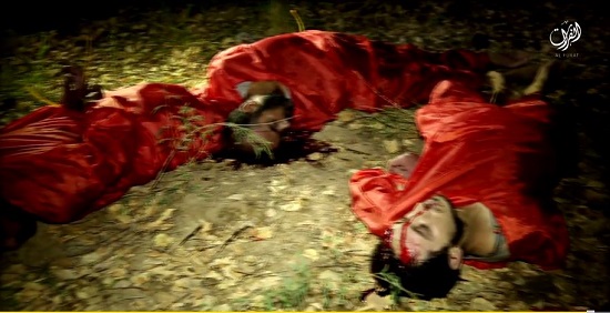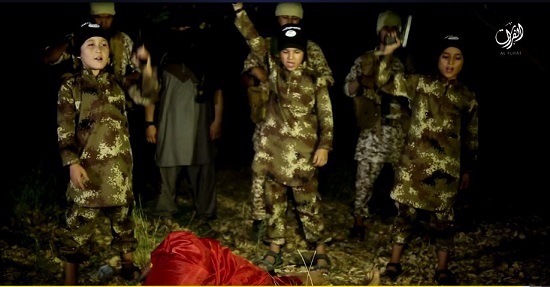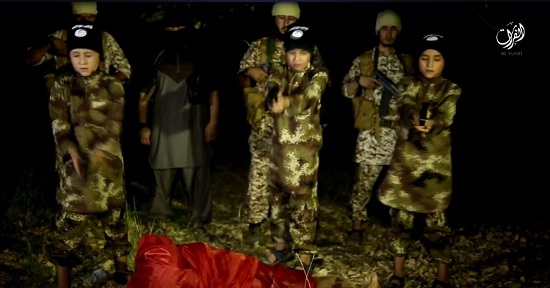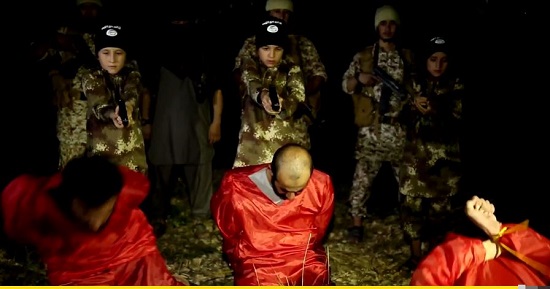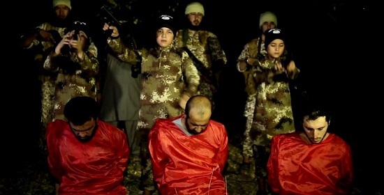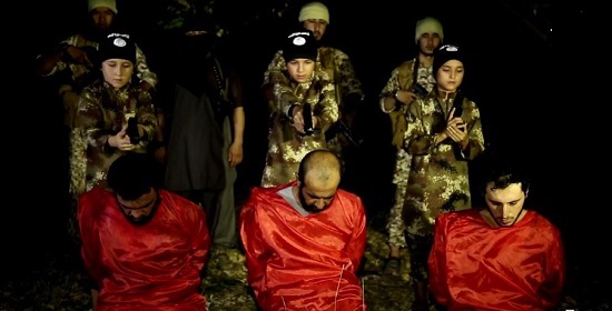صور مروعة … أطفال أوزبك يٌعدمون 3 عراقيين بأمر ” داعش”