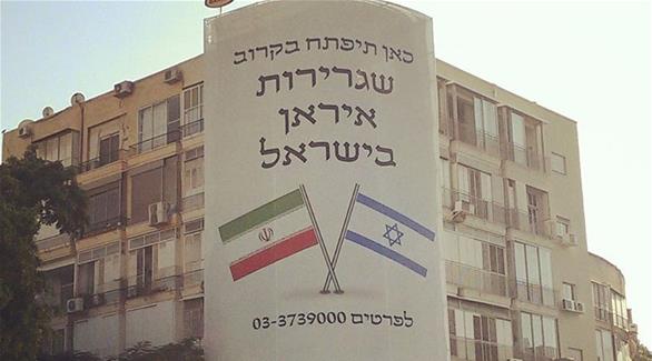 لوحة في قلب تل أبيب تُبشر بإفتتاح السفارة الإيرانية في إسرائيل