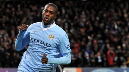 Manchester City’s Yaya Toure celebrates scoring against Bayern Munich during the UEFA Champions League match at the Etihad Stadium, Manchester.