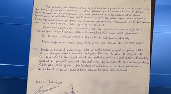 كشفت قناة “بي اف تي في” الفرنسية، بعد توجيه الاتهام رسمياً من القضاء الفرنسي، لكل من الصحفية كاترين غراسيه وزميلها اريك لوران، عن وثيقة تثبت تورطهما في محاولة ابتزاز ملك المغرب والدولة المغربية للحصول على 3 ملايين يورو في مقابل التخلي عن نشر كتاب يكشفان فيه “حقائق مدمرة ومثيرة” عن المغرب وفق تهديدهما.