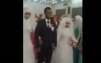 بالفيديو.. شاب يتزوج بفتاتين محجبتين ويقيم لهما حفل زفاف واحدا