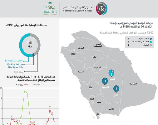 وبذلك يرتفع عدد حالات الإصابة جراء الإصابة بفيروس “كورونا” إلى 1223 حالة منذ عام 2012 .