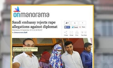 نفت السفارة السعودية بالهند جملة وتفصيلًا مزاعم ضد دبلوماسي سعودي بنيودلهي بدعوى الاغتصاب وما أثير حول بلاغ آخر ضد زوجته وابنته أمس الثلاثاء بزعم تعذيب خادمتين نيباليتين بمدينة جورجاون مليانين بناء على شرطة هاريان.