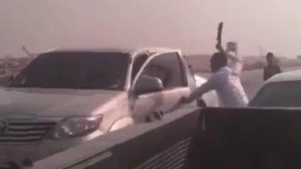 أظهر مقطع فيديو تناقله مستخدمون سعوديون لمواقع التواصل الاجتماعي قيام سعودي بمهاجمة قائد مركبة بساطور خلال توقفهما عند إحدى الإشارات المرورية ،على إثر خلاف مروري.