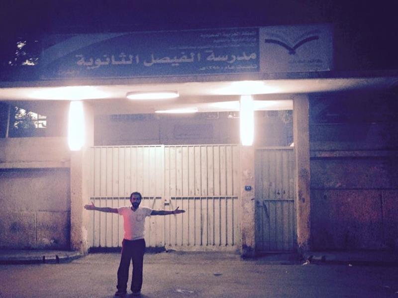 ظهر الفنان المصري أحمد حلمى فى صورة جديثة له أمام بوابة المدرسة الثانوية القديمة بمدينة جدة .