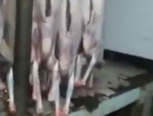 انتشر على مواقع التواصل الاجتماعي مقطع فيديو غريب لخراف مذبوحة بأحد المطاعم، يختفي داخل بطونها فئران ضخمة تخرج بمجرد الطرق عليها.
