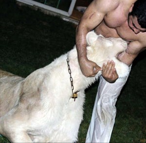 وعما إذا كان يواجه مخاطرة أثناء التعامل مع هذه الحيوانات المفترسة قال :”لا توجد مخاطر ولكن يجب ان تكون حذرا طوال الوقت في التعامل معها واحترامها ويجب أن تكون في تمام الوعي، ومهما كان، لا ننسى انه أسد ومفترس بطبيعته، وهناك قواعد وشروط معينة اثناء التعامل معه، مثلا عدم الاقتراب منه أثناء الأكل، لا تناوله الطعام بيدك، وايضا عدم اعطائه ظهرك، ومع كل هذا المحاذير استطعت كسر هذه الشروط واقتربت منه في وقت الأكل وأعطيته ظهري وجعلته يقفز فوقي، وفي بعض الأحيان تفضل الأسود تناول طعامها من يدي”.