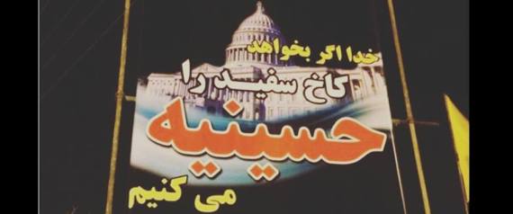 نشرت صفحة “تقاطع” الإيرانية على فيسبوك، صورة للوحة إعلانية عُلقت في مدينة انديشه الجديدة (غرب العاصمة طهران)، وكتب عليها “لو أراد الله، سنجعل البيت الأبيض حسينية”.