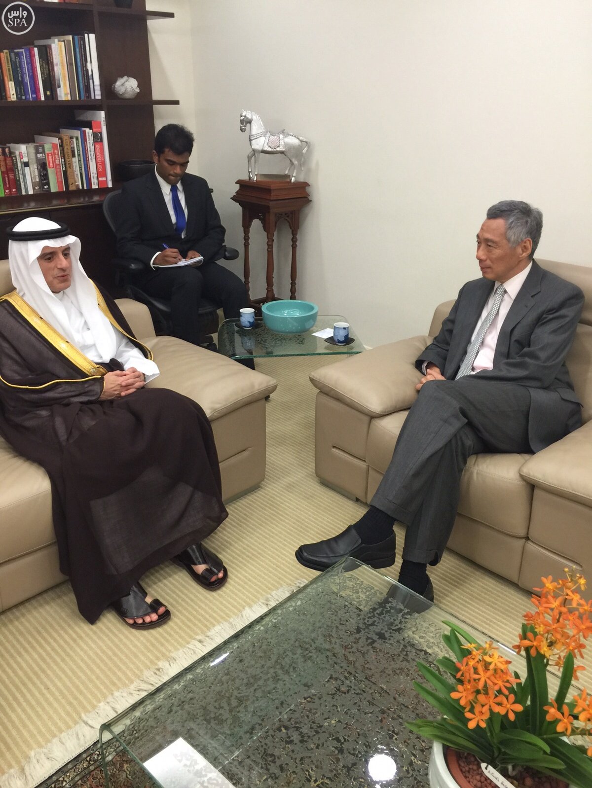 استقبل رئيس وزراء سنغافورة لي سينق لونغ وزير الخارجية عادل بن أحمد الجبير الذي وصل إلى سنغافورة عصر اليوم في زيارة رسمية .