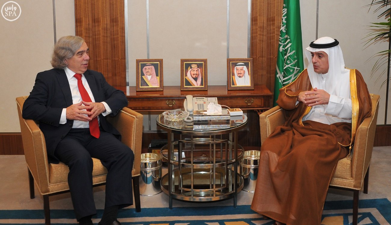 التقى وزير الخارجية عادل بن أحمد الجبير , في مكتبه بمقر الوزارة بالرياض اليوم وزير الطاقة الأمريكي الدكتور آرنست مونيز.