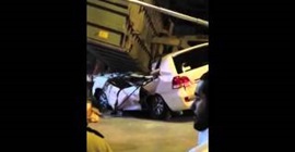 مشاهد رهيبة لشاحنة تسحق “لاند كروزر” فى الرياض وسط رعب المارة (فيديو)