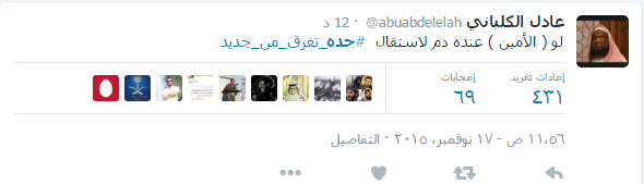 و كتب الكلباني عبر حسابه في ” تويتر “: لو ( الأمين ) عنده دم لاستقال .