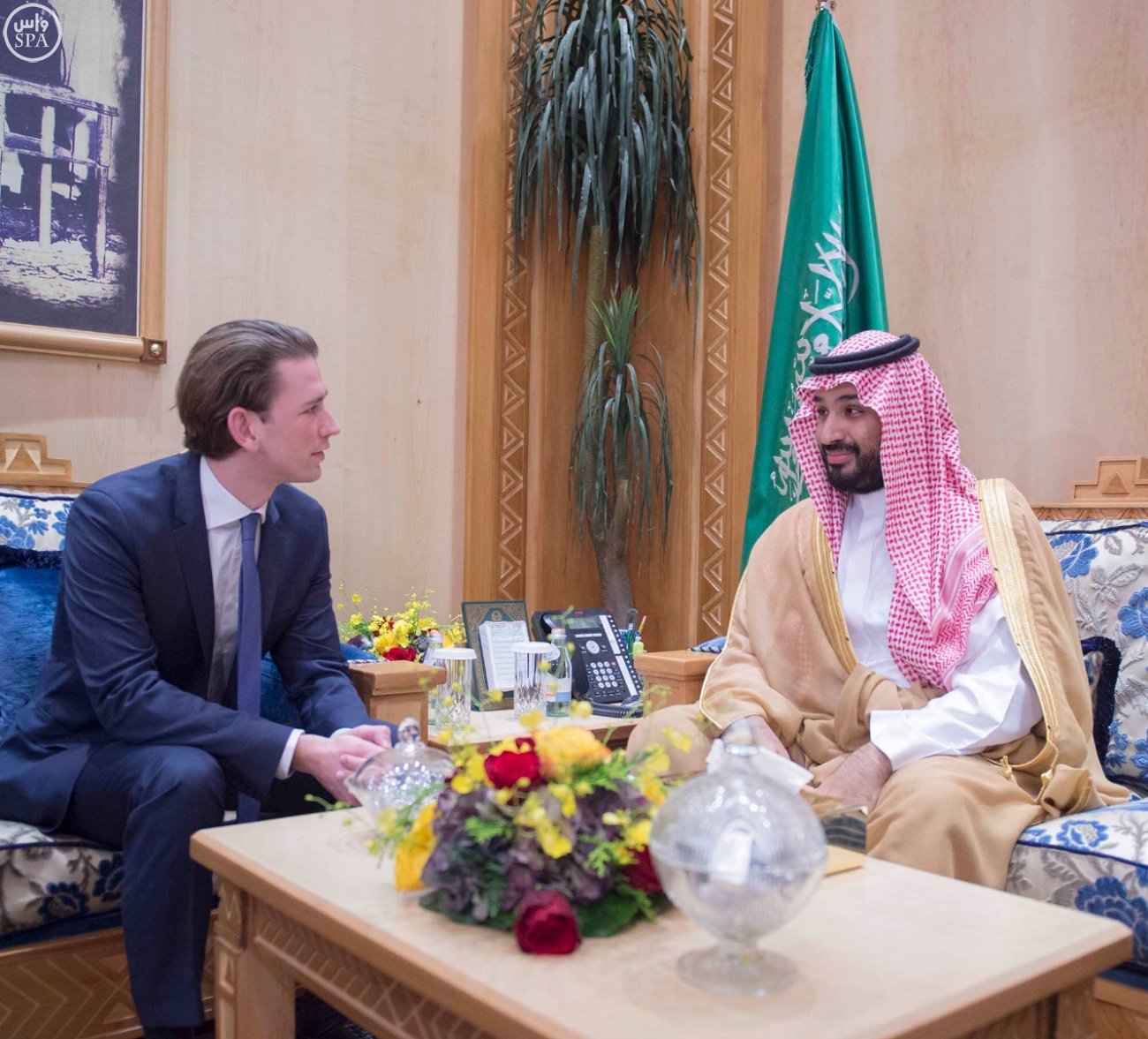 التقى صاحب السمو الملكي الأمير محمد بن سلمان بن عبدالعزيز ولي ولي العهد النائب الثاني لرئيس مجلس الوزراء وزير الدفاع في الرياض اليوم معالي وزير خارجية النمسا سبستيان كورتس.