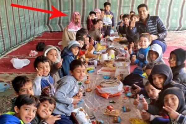 وأظهرت الصورة المعلم الحجي أثناء تناوله الطعام مع الطلاب في صورة تعبر عن أبوته الحانية، وهو ما انعكس حزنا شديدا على فراقه من قبل جميع من عرفه، وخاصة طلابه وزملاءه.