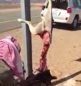 تناقل مستخدمون سعوديون لمواقع التواصل الاجتماعي مقطع فيديو يظهر إقدام عدد من السعوديين ببلدة الجرفية (جنوب عفيف) على ذبح ذئب قاموا باصطياده قبل أن يقسّموه بينهم.