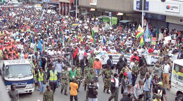 وأذاعت شبكة “اي ان سي ايه” التلفزيونية صورا للمتظاهرين وهم يرددون ” يجب أن يرحل زوما “.