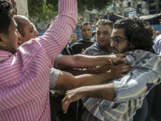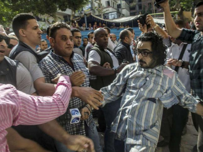 قام حرس المشير عبدالفتاح السيسي، المرشح لرئاسة الجمهورية، الاثنين، بالاعتداء على المذيع المعروف باسم “علي بيجامة” خلال محاولته الاقتراب من السيسي وتسجيل حديث معه. واقترب “أبو بيجامة” الذي كان يرتدي “بيجامته المقطعة” ويمسك بيده ميكروفون قناة “دريم 2″، إلا أن حرس السيسي أوقفوه، بحسب ما أوردت “المصري اليوم”، وقام أحدهم بلكمه في وجهه وإبعاده عن السيسي. وكان السيسي قد أدلى بصوته في انتخابات الرئاسة التي يتنافس فيها مع المرشح حمدين صباحي، في مدرسة الخلفاء الراشدين بمصر الجديدة، حينما وقعت هذه الواقعة، التي قام على إثرها بإرجاع نظارة “بيجامة” عن طريق أحد المصوتين إليه، بعد أن سقطت عنه عقب اعتداء الحراس عليه.