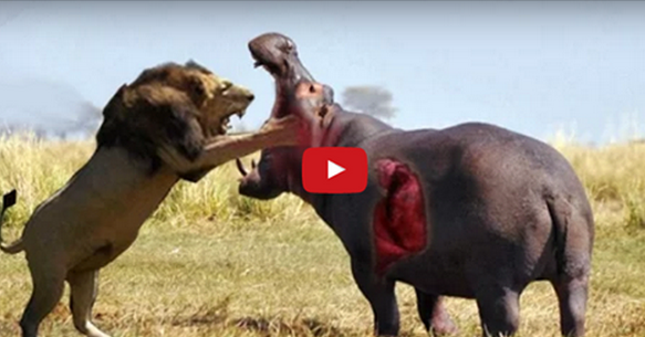 وأظهر مقطع فيديو تجمع قطيع الأسود حول فرس النهر الوحيد، يحاول كل منهم نهش ما تصل إليه مخالبه، ولا يظهر فرس النهر مقاومة تذكر، يبدو وأنه استسلم للموت، وقع فريسة سهلة لكثرة الأسود، لن يدخل حتى المعركة، ربما هذا ما تخله القطيع قبل أن ينتفض فجأة فرس النهر ليعض رأس أحد الأسود ويفسح لنفسه مجالًا للهرب إلى الماء ليختفي بداخلها.