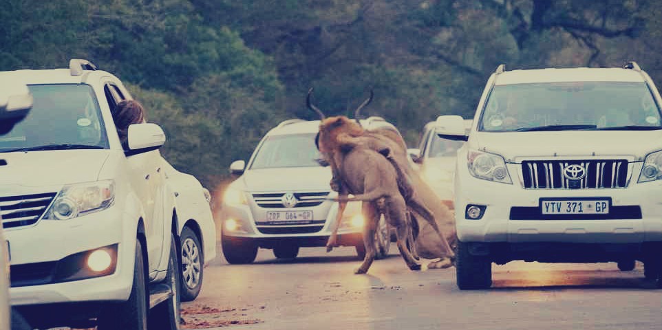 بالصور .. معركة شرسة بين أسد وغزالة في الطريق أمام المارة بجنوب إفريقيا