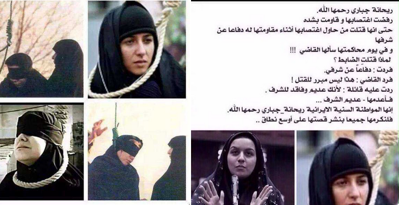ودشن المغردون “هاشتاق” بعنوان “#الشهيدة_ريحانة_جباري” لهذا الغرض ، حيث قال المفكر الكويتي عبدالله النفيسي ، فى تغريدة له عن جباري : “حين سألها القاضي: لماذا قتلته؟ قالت: لأنه أراد أن يعتدي على شرفي.. قال القاضي: هذا ليس مبررا لقتله.”