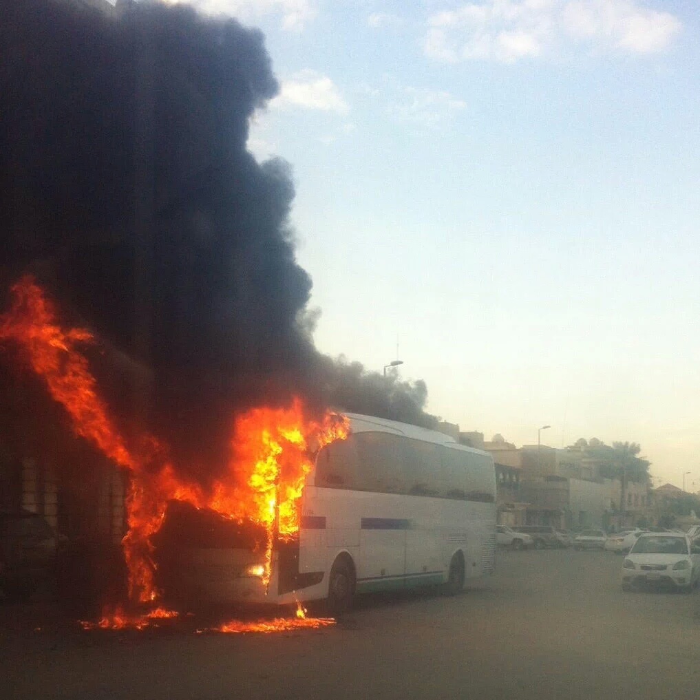 صرح الناطق الإعلامي لشرطة المنطقة الشرقية بأنه عند الساعة الرابعة والربع من عصر اليوم الثلاثاء 25-3-1437 ، تعرضت إحدى الحافلات ، المخصصة لنقل موظفي وعمال إحدى الشركات إلى بلدات وأحياء محافظة القطيف ، للاعتداء من قبل (4) أربعة أشخاص من مثيري الشغب المسلحين ، وذلك عند مرورها بأحد الأحياء السكنية المجاورة لبلدة القديح ، حيث قاموا باستيقافها تحت تهديد السلاح ، وإضرام النار فيها .