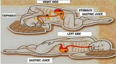 أظهرت الدراسات بأن النوم على الجانب الأيسر للجسم يقلل من الإصابة بالحرقة في المعدة والمريء أثناء النوم.